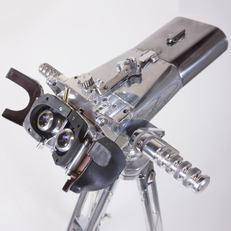 This is an exceptional 20th century WWII German 12x60 Kriegsmarine binocular, presented on an adjustable wooden or chrome Tripod. The binoculars were manufactured by the company Carl Zeiss. Carl Zeiss is a German manufacturer of optical systems, founded in Jena, Germany in 1846 by optician Carl Zeiss. These binoculars were used for long-watch land and sky observation by German forces between 1939 and 1945. These optics have been originally restored in a time-consuming process to reveal a crystal clear Image. Externally, hand stripping the paint inch by inch and polishing to the modern luster resembling a silver finish. These binoculars were Primarily Used for Monitoring incoming aircraft and outgoing artillery fire. When teamed with multiple spotters they could vector both distance and height. Although used throughout the theater of fighting, their primary use was to protect the perimeter of the homeland from allied bombing. All these Binoculars have world-class optics by the known Carl Zeiss. Each Binocular has a story to tell and we are proud to say that every piece is rigorously obtained from lost battlefields and hand restored at our workshop set in the heart of the British countryside. A stunning centerpiece for any home or office, each binocular has its own unique serial markings, which means no one else in the world except you would own this incredible, one of a kind, collectible piece. Additional Information:These Zeiss Binoculars were primarily utilized by Luftwaffe Flak Artillery ground crews, serving as valuable tools for spotting and identifying enemy aircraft. They played a key role in directing crew-served rangefinders, searchlights, and flak cannons of Anti-Aircraft batteries stationed around various German and occupied ports, cities, and industrial centers. Due to their exceptional optics, they also proved invaluable on the battlefield for tactical observation, being employed in multiple theaters of war by the German Army from the outset of 1939.Zeiss bearing the marker of 'Jumelles 12 x 60' , indicating that they would have been made between 1930 and 1939 in occupied France. They are fitted with adjustable and variable light shades (marked farbglasser) for use in all daytime and darker light conditions and have the later war style rain shield (helpful for eyeglass wearers too), as well as convertible barrel, for additional night/ day usage as well as side switch filter for viewing in direct sunlight. Clearly these were obsessively engineered to exacting standards. They have exceptional optics with the 12 indicating the degree of magnification and the 60 indicating the 6 cm optic width.Specification: Binocular 22cm high , 47cm long , 45cm wide, stand adjustable from 130cm to 180cm.