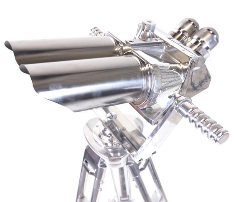 These WWII optics have been originally restored in a time-consuming process to reveal a crystal clear Image. Externally, hand stripping the paint inch by inch and polishing to the modern luster resembling a chrome finish. These binoculars were Primarily Used for Monitoring incoming aircraft and outgoing artillery fire. When teamed with multiple spotters they could vector both distance and height. Although used throughout the theater of fighting, their primary use was to protect the perimeter of the homeland from allied bombing. All these Binoculars have world-class optics by the known Carl Zeiss. The binoculars also feature four types of internal filters, or sun shades. There is clear, light gray, medium dark, and very dark gray. The light gray filters allow for better contrast in poor lighting conditions, and the very dark gray filter allows for objects to be viewed in bright sunlight. This filter was important to have due to the military tactic of planes flying in the sun so they couldn’t be seen from land. These binoculars were ruggedly constructed and were bulletproof, designed to withstand the perilous conditions of the battlefield. They aided in the following wartime tasks: daylight observation of enemy troop movements; directing fire from artillery toward advancing enemy troops and armor; directing fire at unfriendly aircraft; and night observation. The 45 degree angle is one of the most comfortable angles to help an observer sustain for extended watches. Each Binocular has a story to tell and we are proud to say that every piece is rigorously obtained from lost battlefields and hand restored at our workshop set in the heart of the British countryside. A stunning centerpiece for any home or office, each binocular has its own unique serial markings, which means no one else in the world except you would own this incredible, one of a kind, collectible piece.