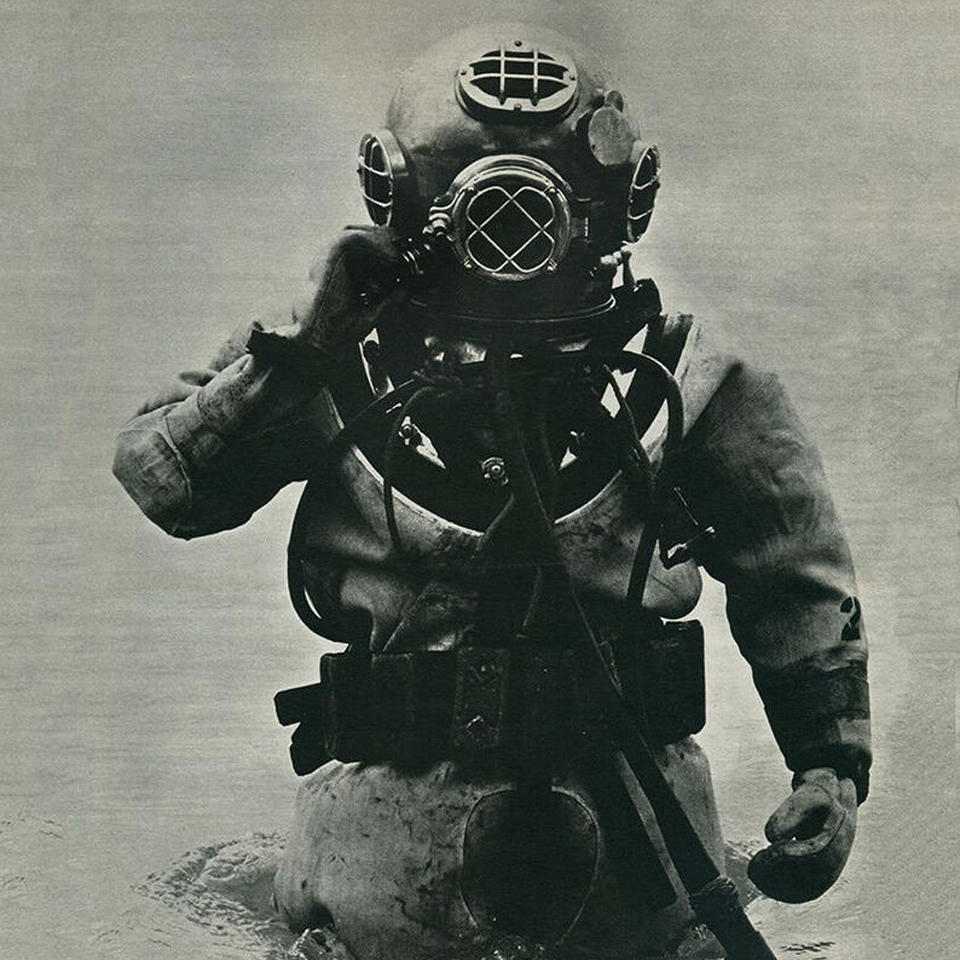The famed US Navy Mark V diving helmet is known worldwide by divers and collectors alike. Arguably the most collected period of Mark V diving helmets is World War 2. One reason for this is the fact that the US Navy had inspectors at each of the four manufacturers – stamping helmets that passed inspection. Helmets featuring this stamp provide proof the helmet was in US Navy inventory and possibly used during the War. The US Navy Mark V is arguably the most iconic helmet design ever made. Its style and history have made it one of the most popular helmets among collectors worldwide. The model was made for the US Navy from 1916 till the mid-1980s. Production of the helmet reached peaks during late World War 1 and also during World War 2. During this entire time span, the Morse Company would produce the Mark V for the military and civilian divers. The helmet is complete with all 12 wing nuts, 4 brails, window guards, glass, window guard screws, air fitting, exhaust, and communications fitting. This Piece had the original paint removed and is hand polished to a Silver Mirror Finish at our workshop.
